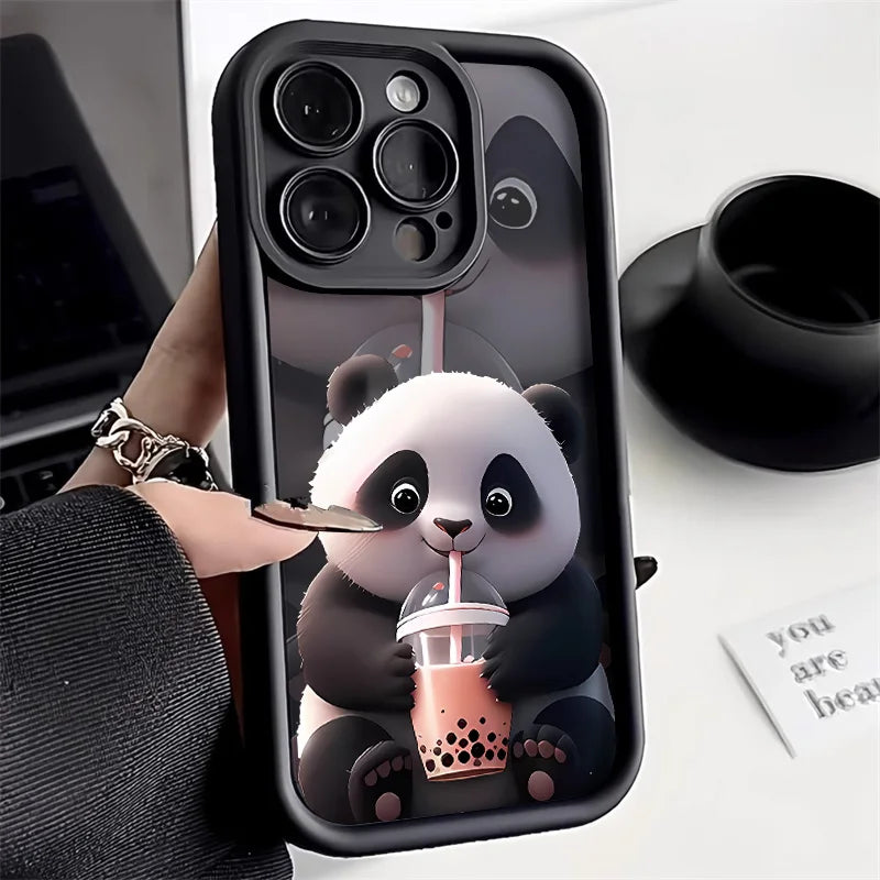 Soft Liquid Silicone Phone Case For iPhone 15 Pro 13 11 12 16 14 Pro Max XR XS X 7 8 Plus SE Shockproof Bumper Cute Panda Cover
