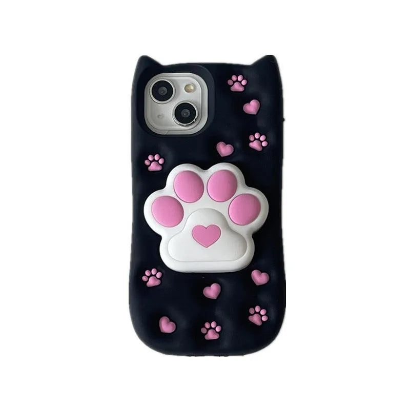 Cartoon Cute 3D Cat Paw Bracket Soft Silicone Case For iPhone 15 14 13 11 12 Pro Max Back Cover With Stand Holder