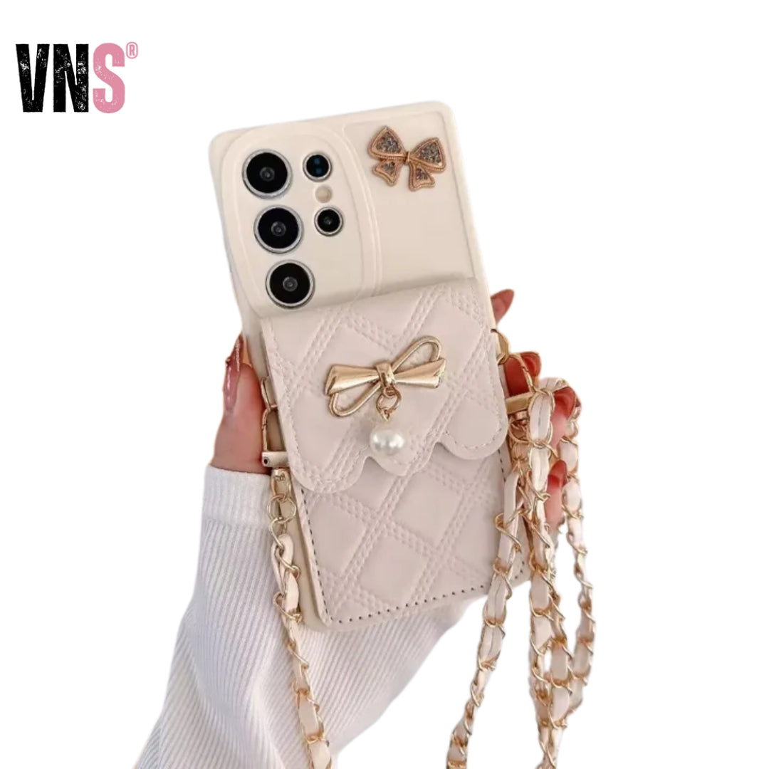 3D Bowknot Crossbody Card Holder Wallet Phone Case For Samsung Galaxy S25 Ultra S24 S23 S21 S20 FE S22+ Plus Note 20 Soft Cover