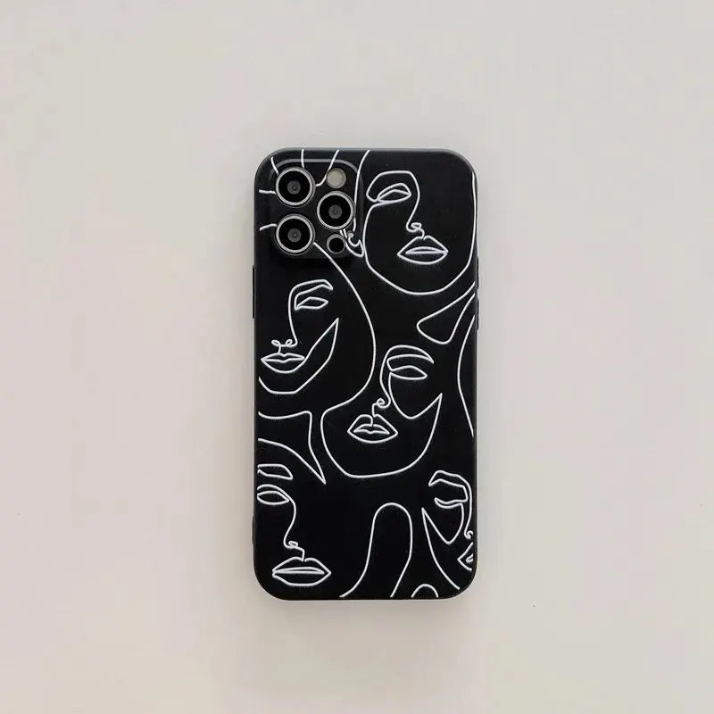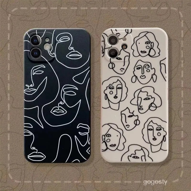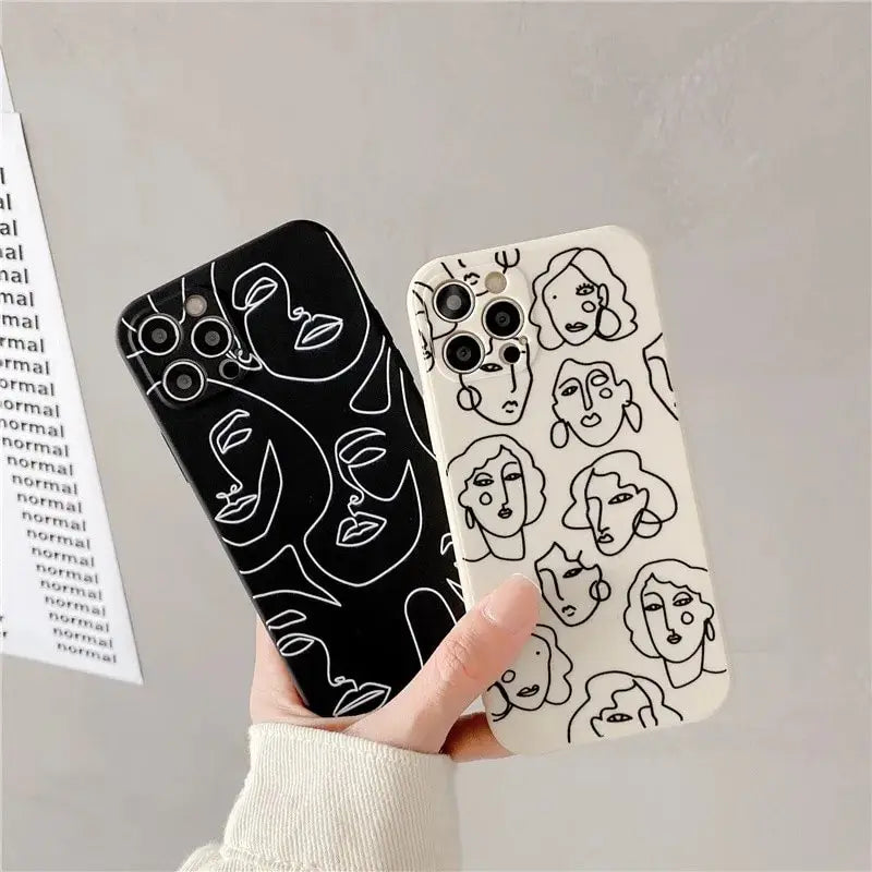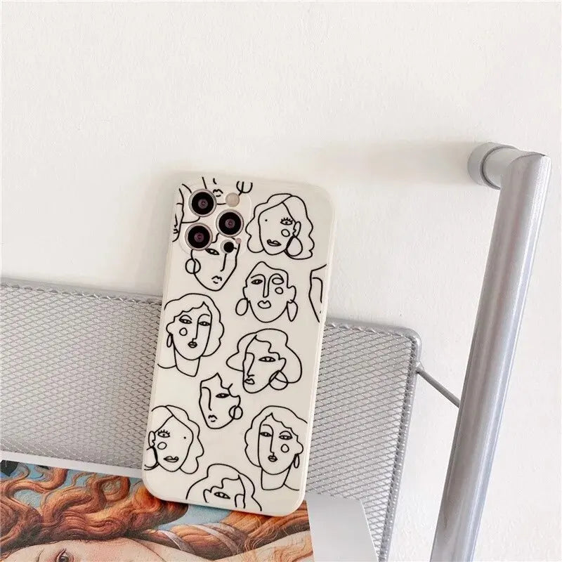 Luxury Soft Silicone Case for iPhone 13 12 11 Pro Max X XR XS 7 8 Plus SE 2020 Art Human Face Abstract Geometry Line Phone Cover