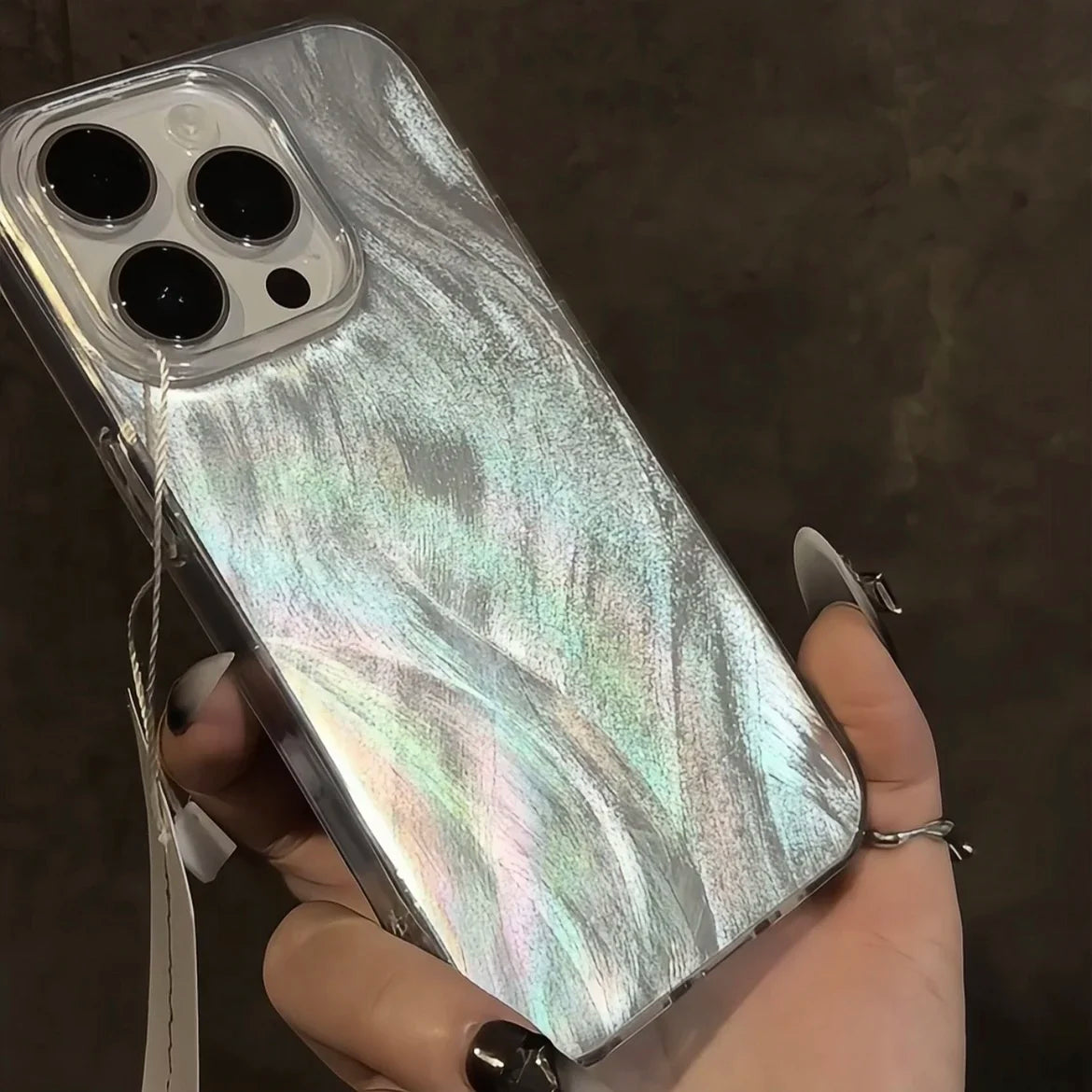 Phone Case Luxury Silver feather laser plating Glitter for IPhone16 12 13 14 15 Pro Max X Mini Simple Fashion Shockproof Cover