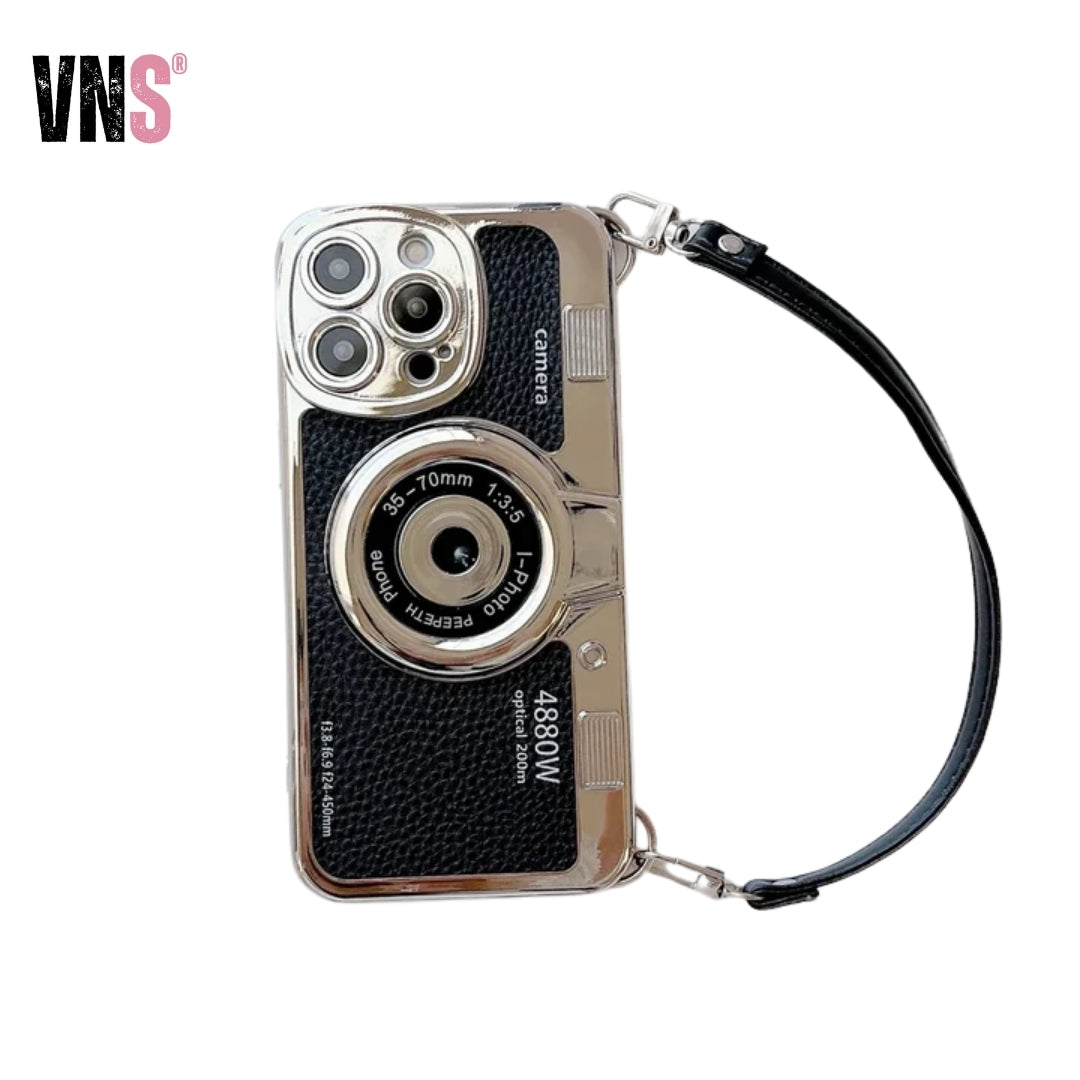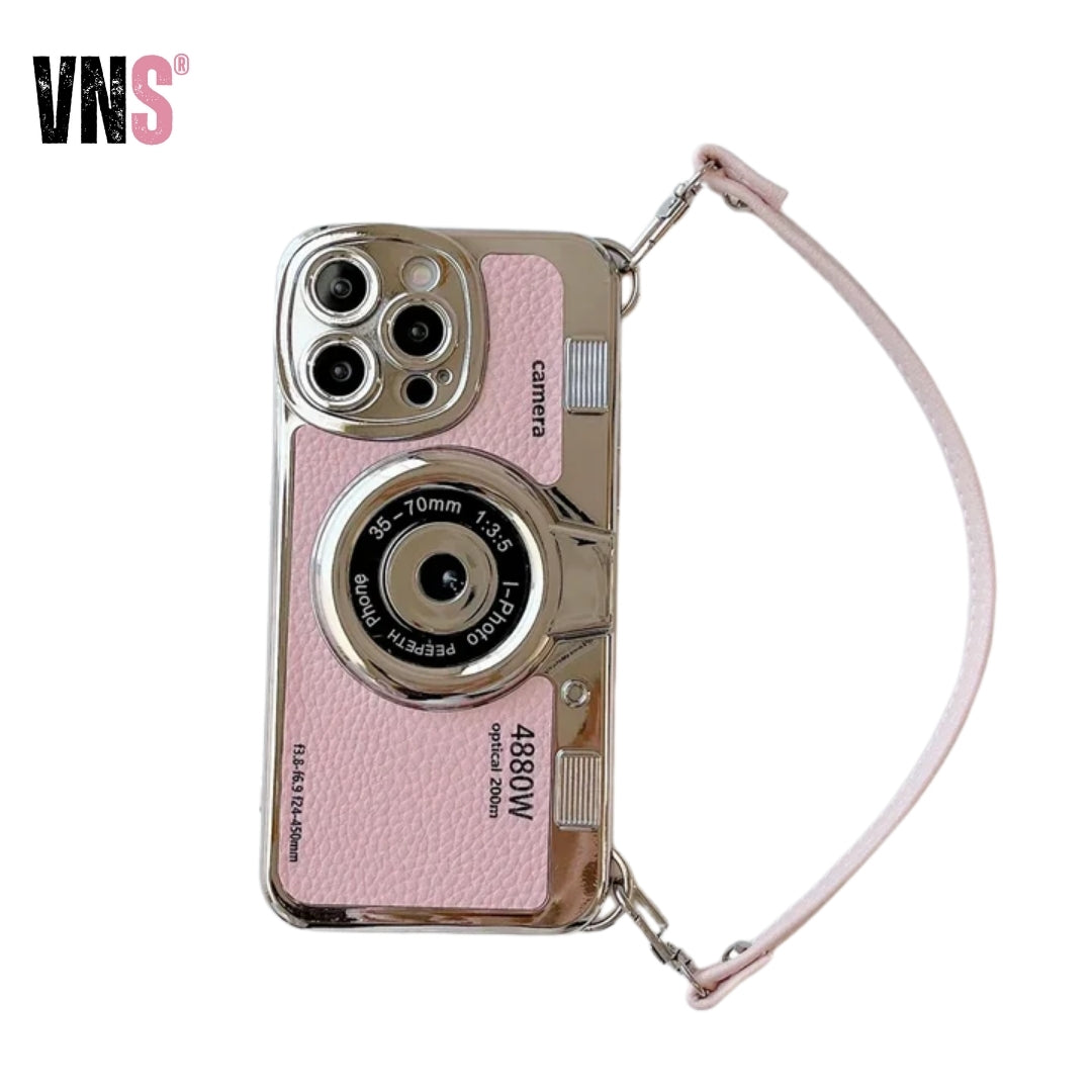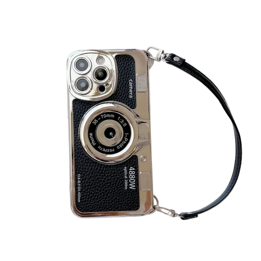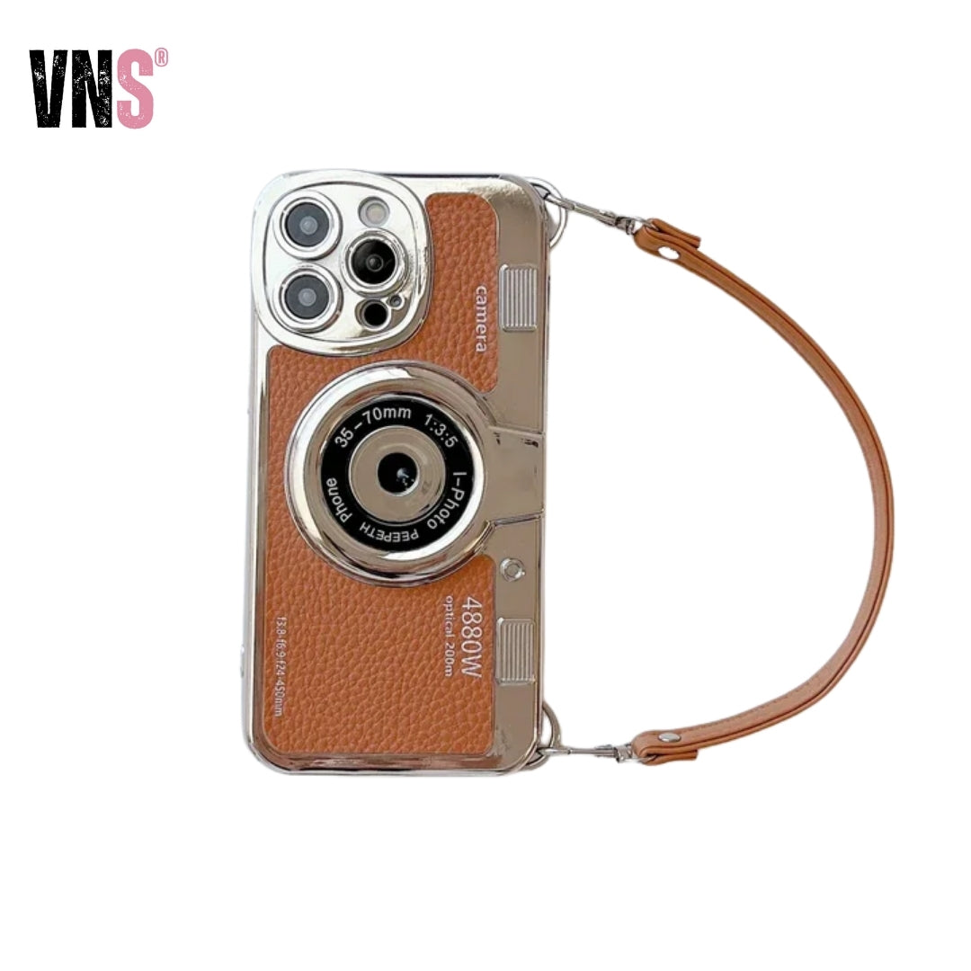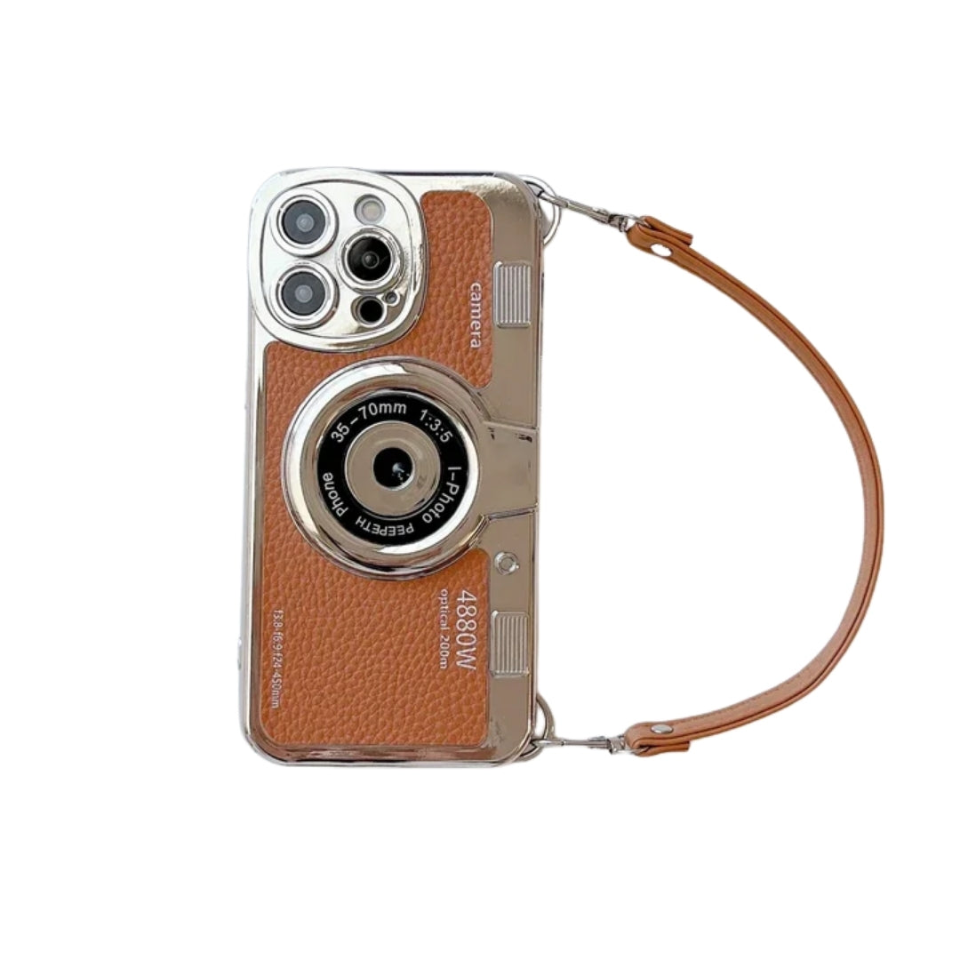 Luxury Retro Stereo Camera Hand with Lanyard Phone Case For iPhone 16 15 14 Plus 13 12 11 Pro Max Leather Pattern Case