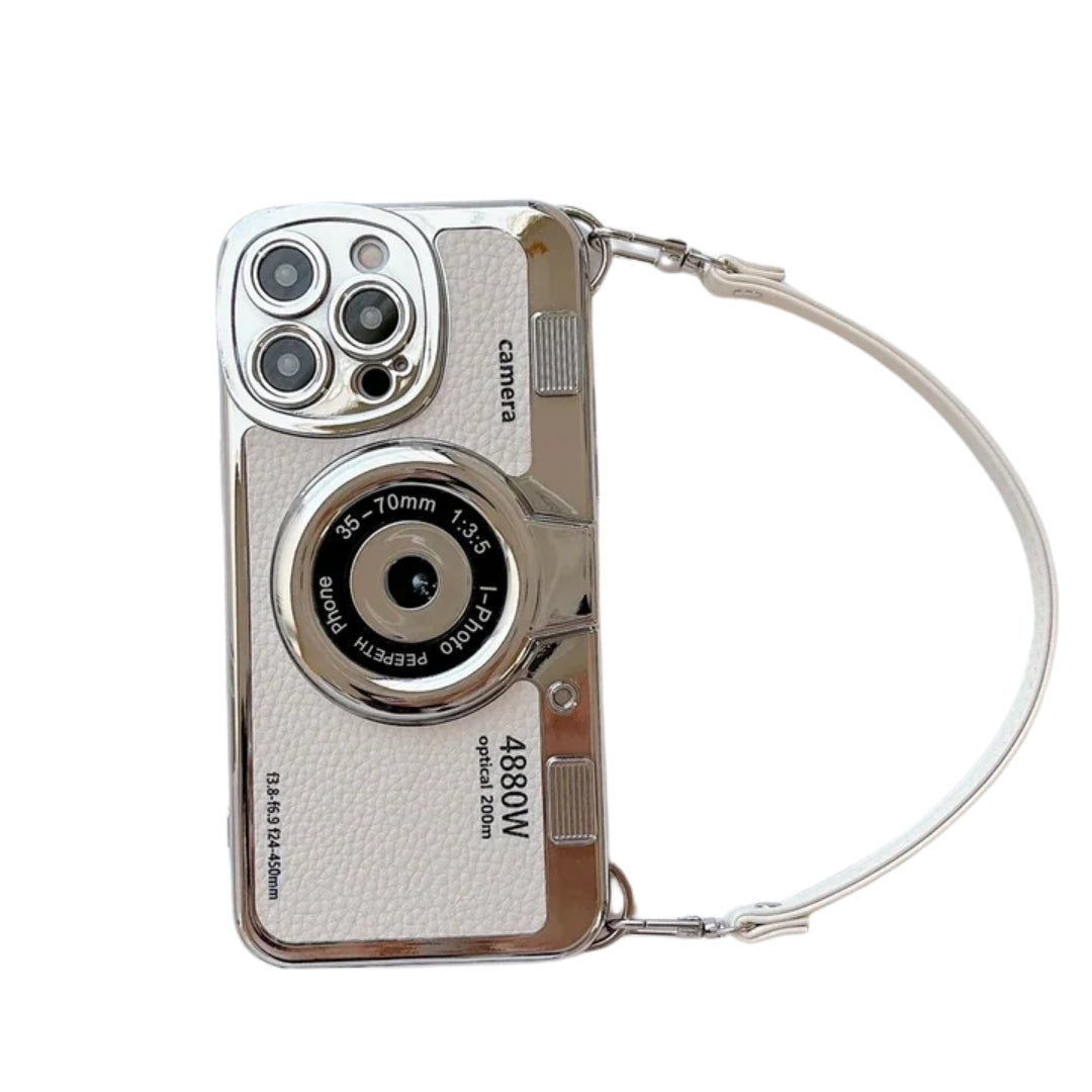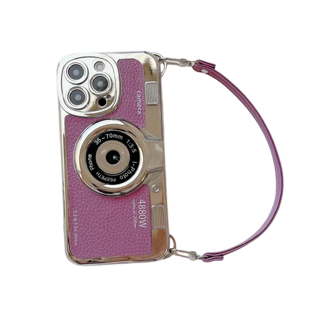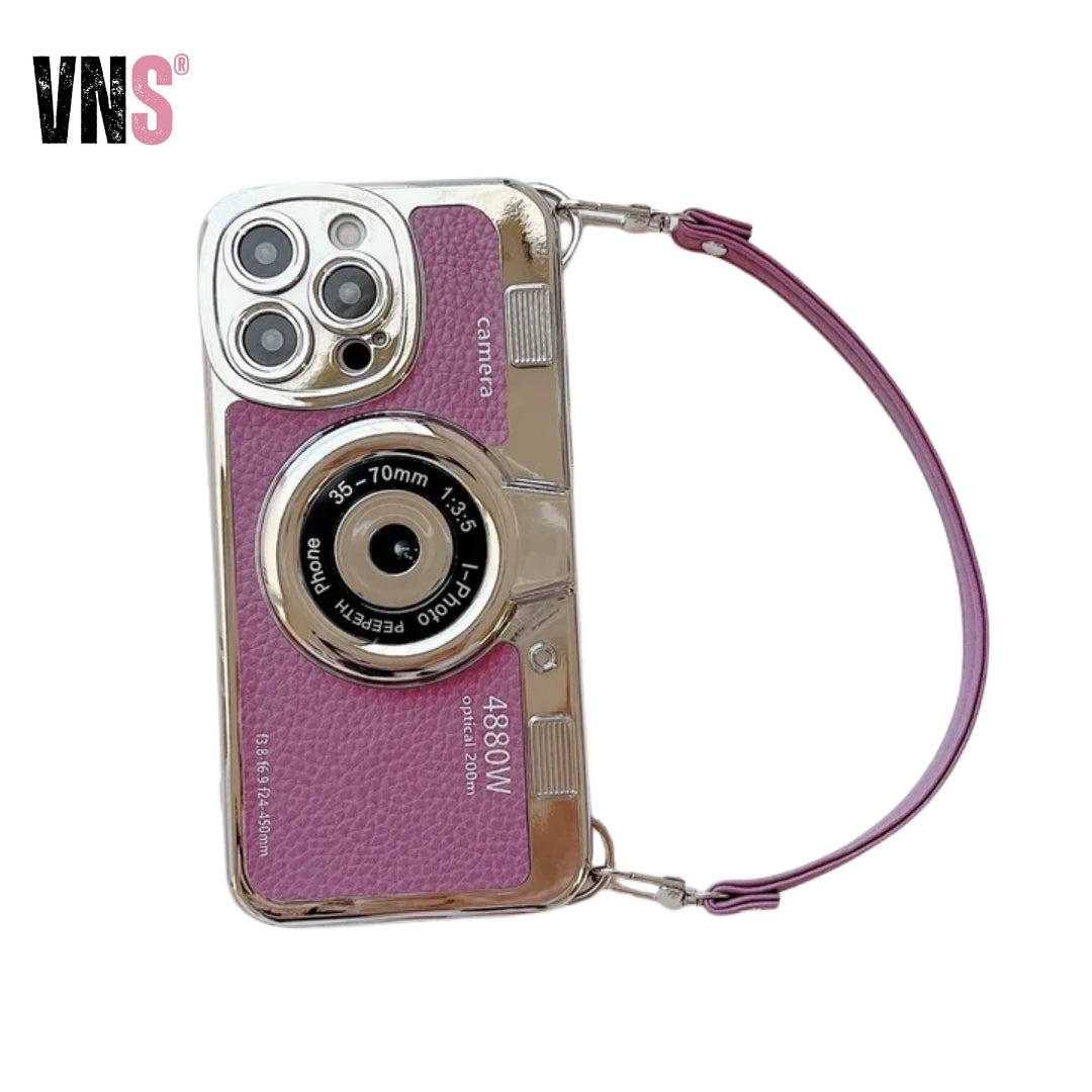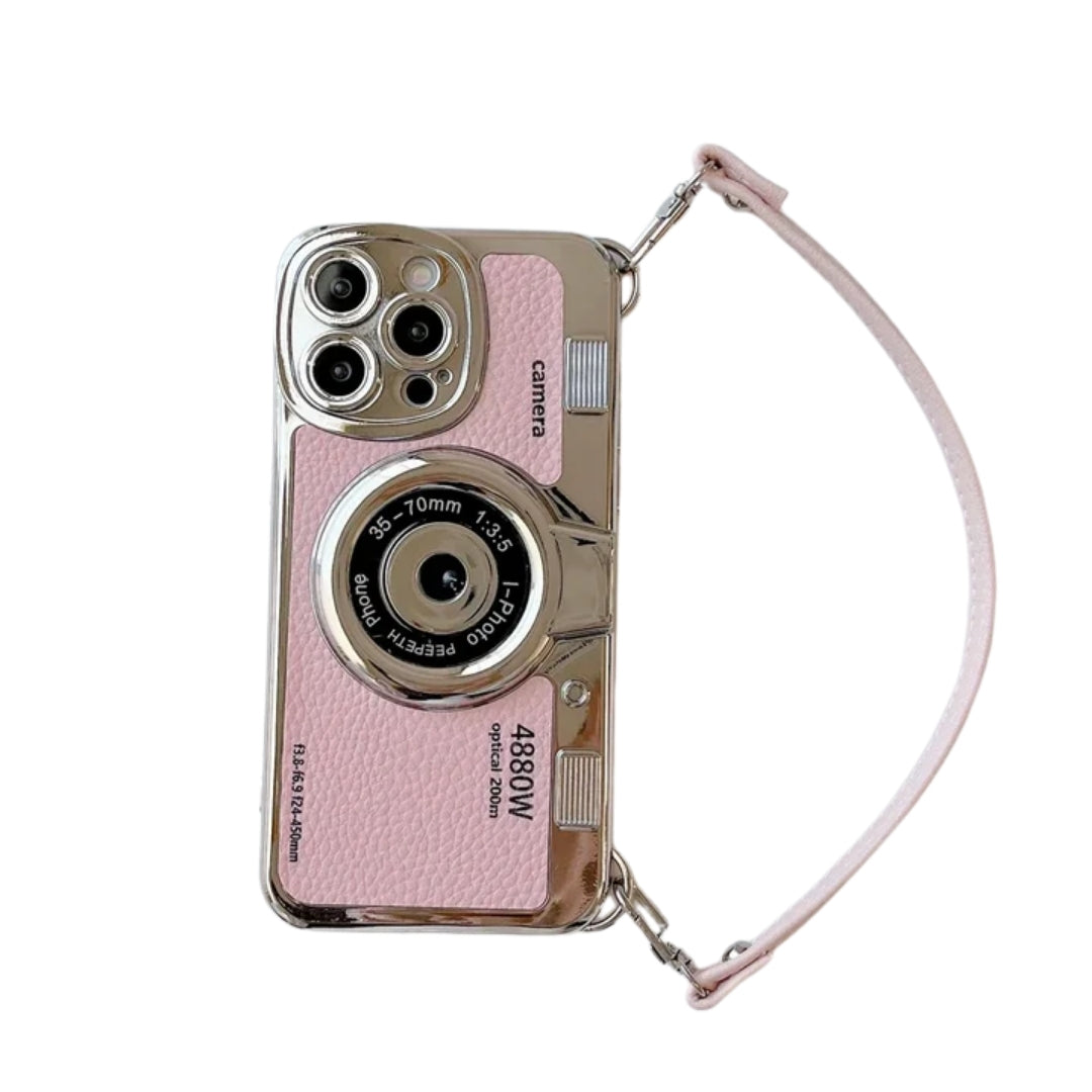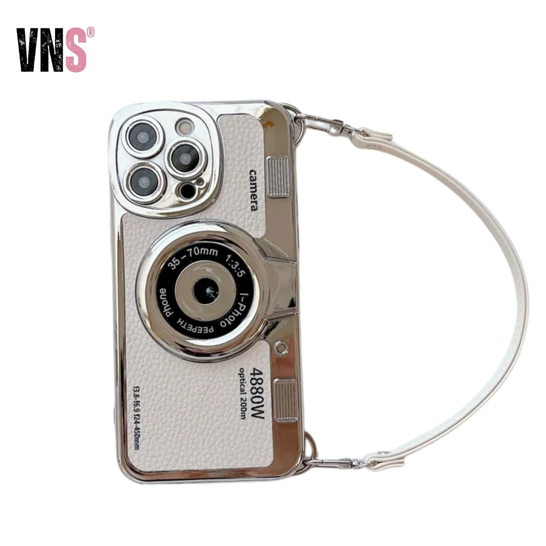 Luxury Retro Stereo Camera Hand with Lanyard Phone Case For iPhone 16 15 14 Plus 13 12 11 Pro Max Leather Pattern Case