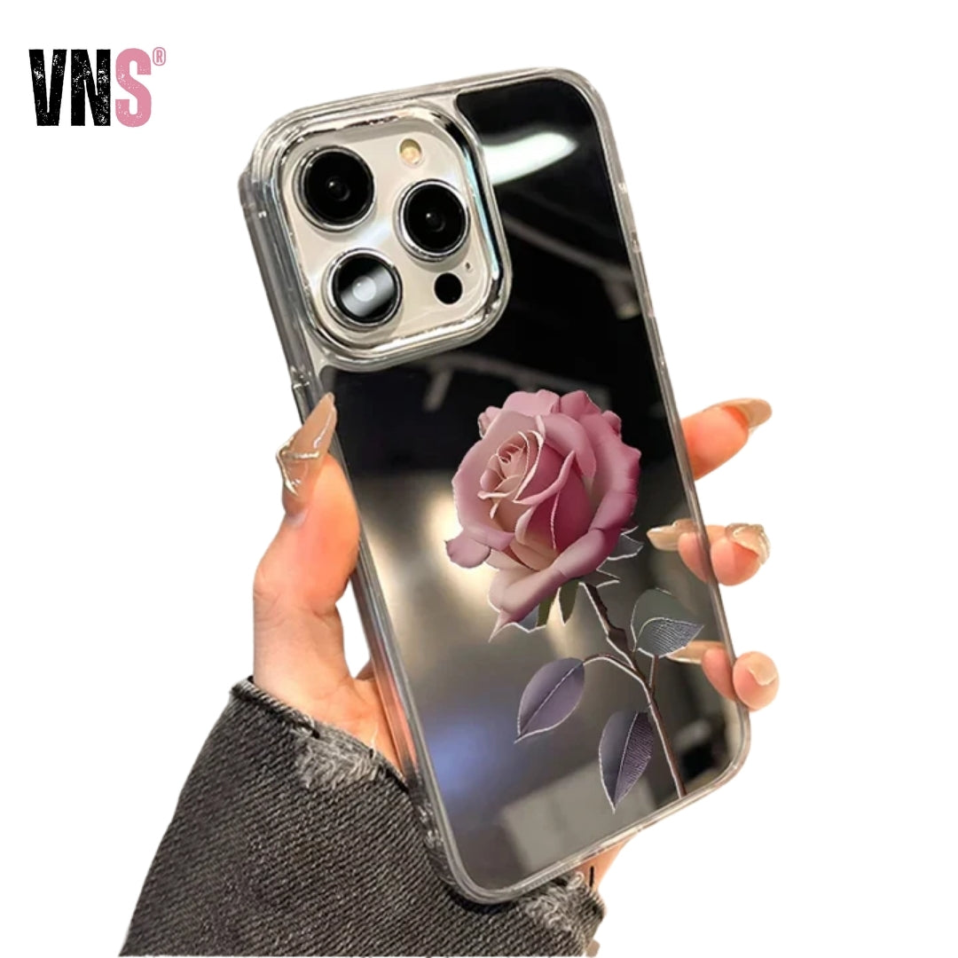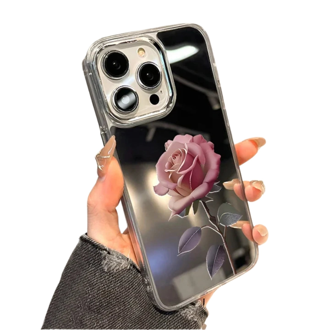 Elegant Rose Mirror TPU Cute Phone Case For iPhone 16 Pro 15 14 13 12 11 XR X XS 8 Plus SE Soft Shockproof Floral Protective Cover
