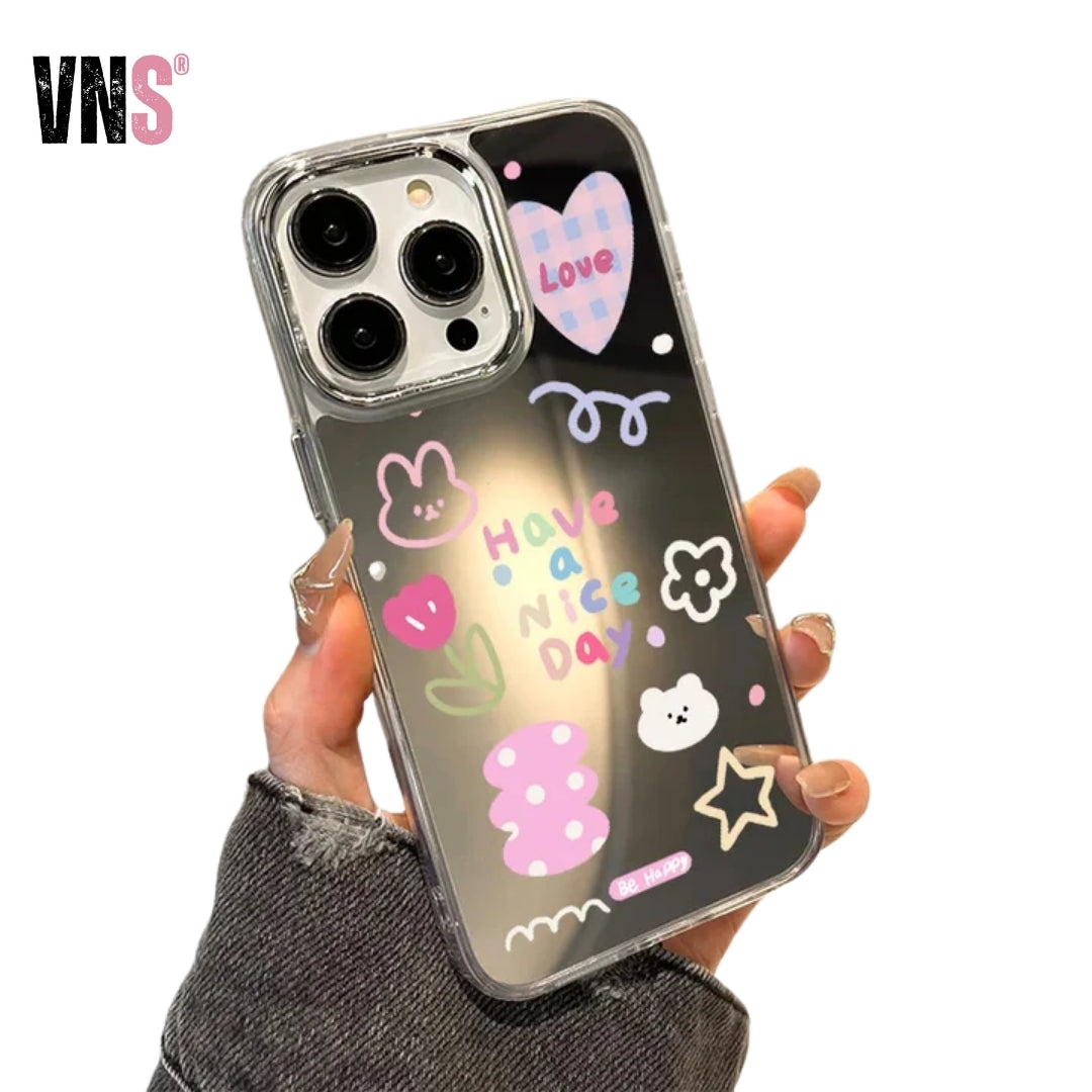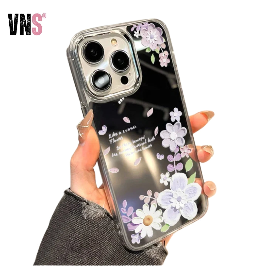 Charming rose flower pattern combined with a practical makeup mirror on the back makes this case a perfect blend of beauty and function. Ideal for fashion-forward women and girls.