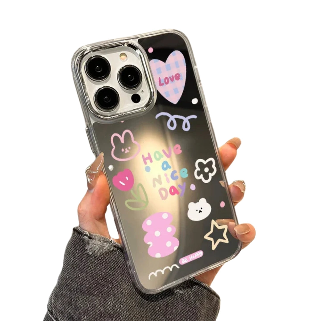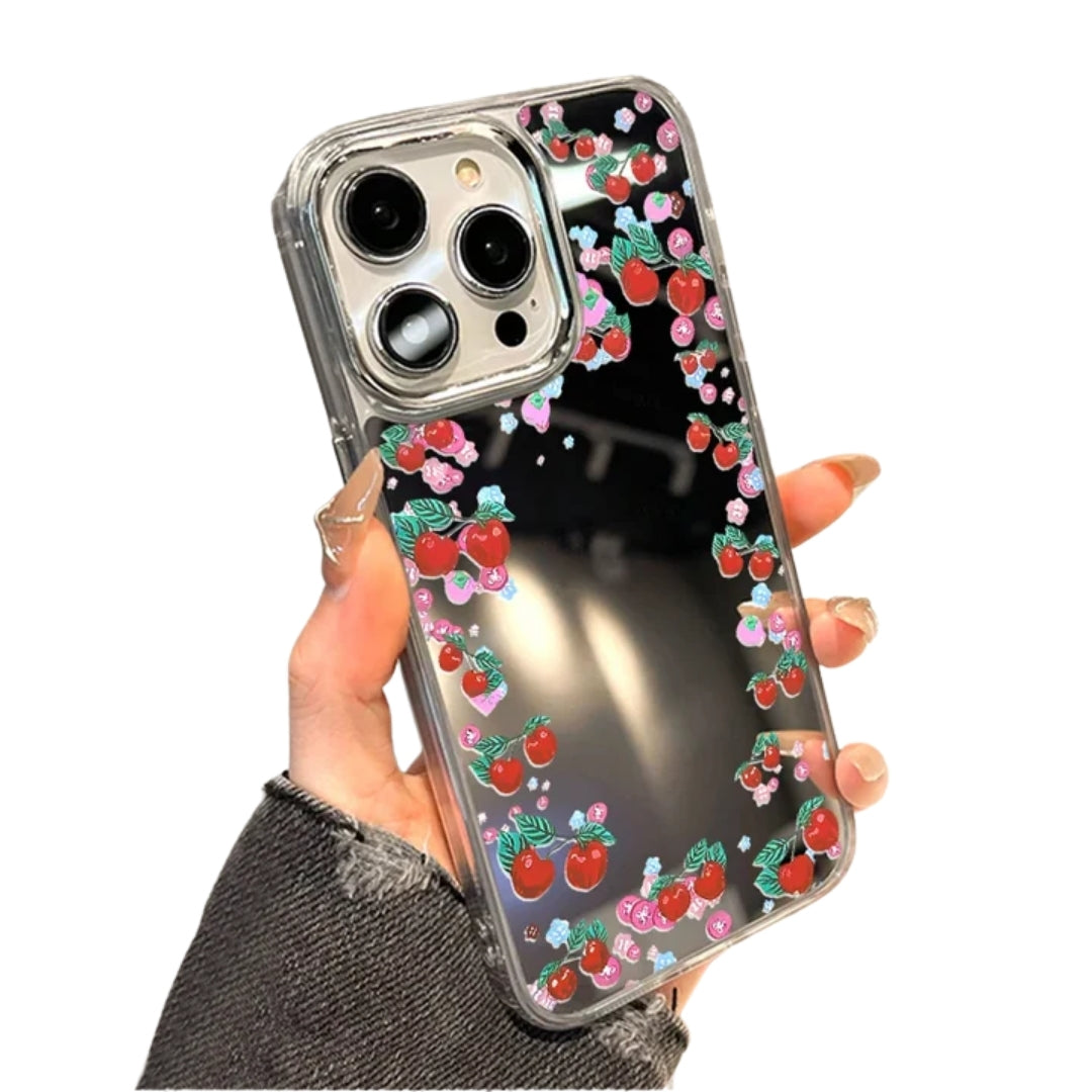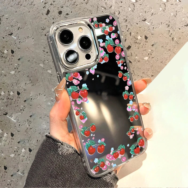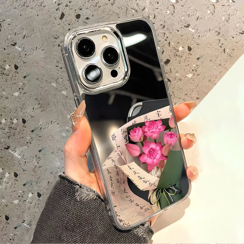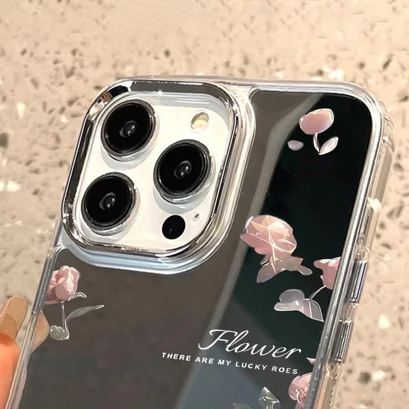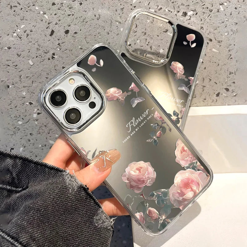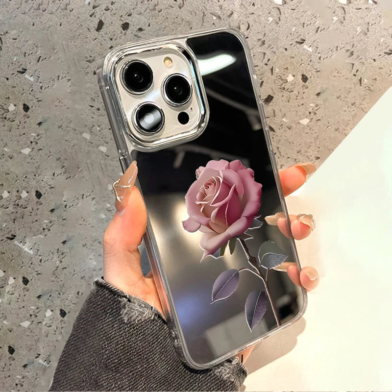 Rose Flower Mirror Cute Phone Case For iPhone 16 Pro Max 15 14 13 12 11 Plus XR X XS SE Shockproof Soft TPU Floral Cover