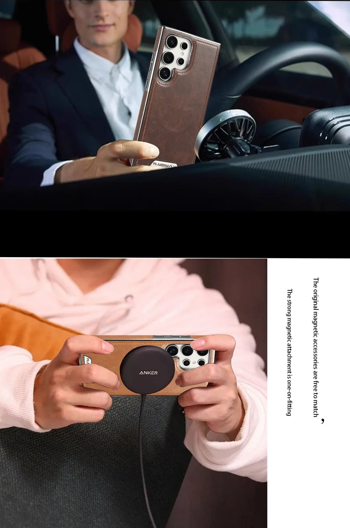 High End Leather Magnetic Phone Case, For Samsung Galaxy S25 S24 S23 Ultra S25 Plus,wireless charging, anti drop protective case